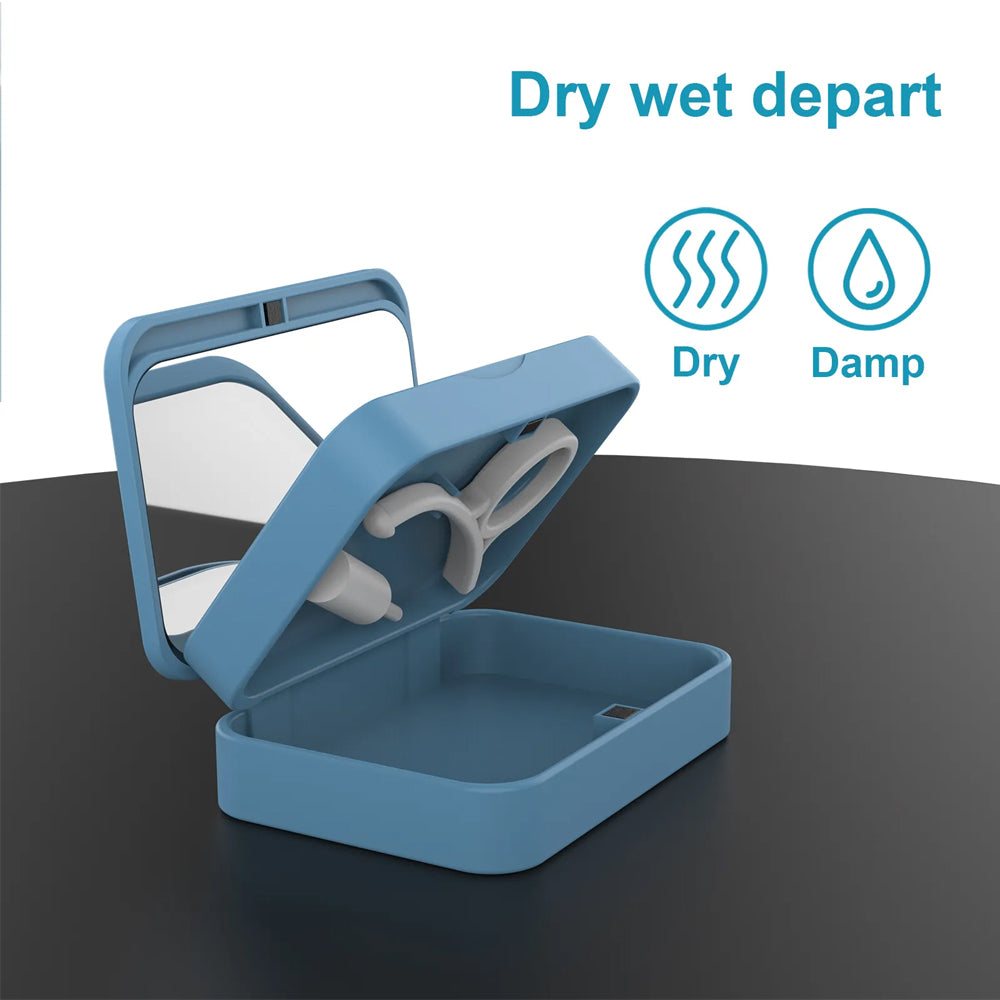 3. Retainer Container Practical Kit Design - The aligner chewie and removal tool are hidden in the section below the mirror. When you remove aligners, the hook tool can protect your gums not to be scratched.
